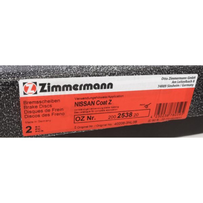 Передний тормозной диск Zimmermann 200.2538.20 на NISSAN EVALIA АВТОБУС с двигателем e-NV (ME0) дата производства с 07.2010 по до н.в.