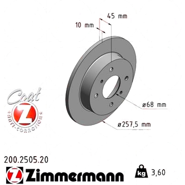 Задний тормозной диск Zimmermann 200.2505.20 на NISSAN PRIMERA Traveller (W10) с двигателем 1.6 i дата производства с 07.1990 по 03.1998