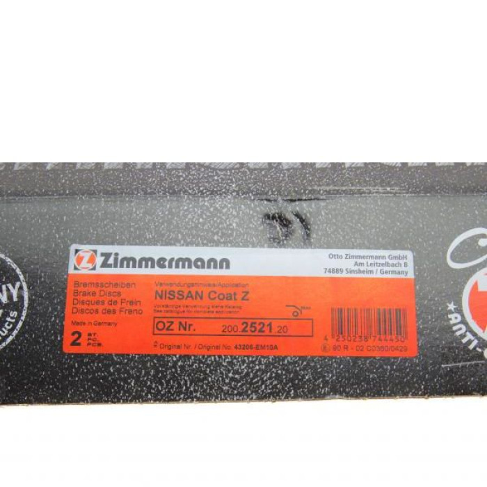 Задний тормозной диск Zimmermann 200.2521.20 на NISSAN TIIDA СЕДАН (SC11) с двигателем 1.5 dCi дата производства с 05.2004 по 12.2013
