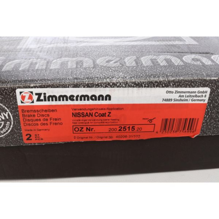 Передний тормозной диск Zimmermann 200.2515.20 на NISSAN X-TRAIL (T30) с двигателем 2.2 dCi 4x4 дата производства с 01.2001 по 12.2013