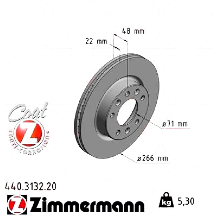 Передний тормозной диск 266x22,0 на PEUGEOT 308 SW II (LC_, LJ_, LR_, LX_, L4_) с двигателем 1.2 THP 130 Zimmermann 440313220
