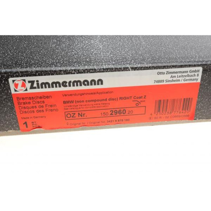 150296020 Zimmermann Coat Z Спортивный задний правый тормозной диск с перфорацией 370x24