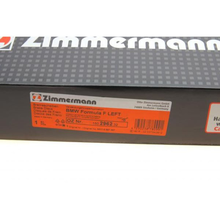 150296232 Zimmermann Formula F Передний левый тормозной диск 395x36