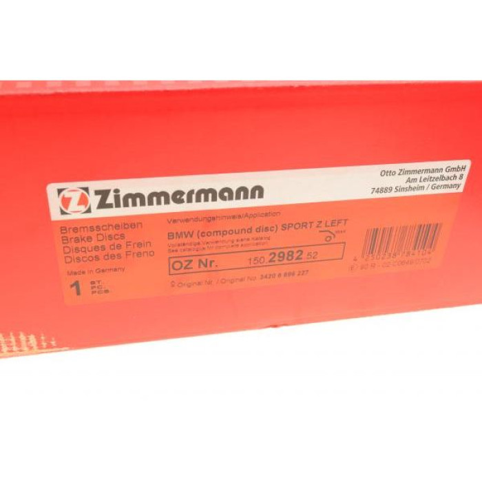 150298252 Zimmermann Sport Z Спортивный задний левый тормозной диск с перфорацией 345x24