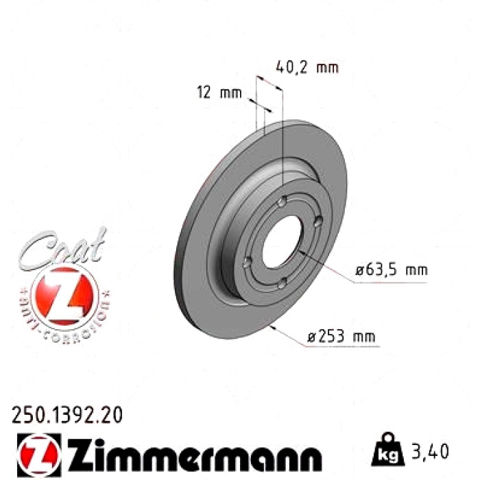 Задний тормозной диск 253x12 Zimmermann 250.1392.20