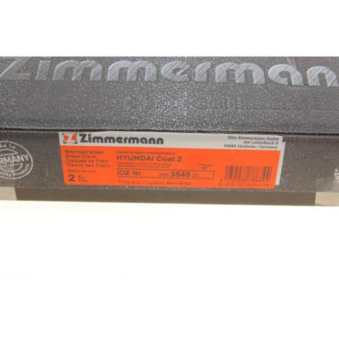 285354520 Zimmermann Coat Z Задний тормозной диск 314x18