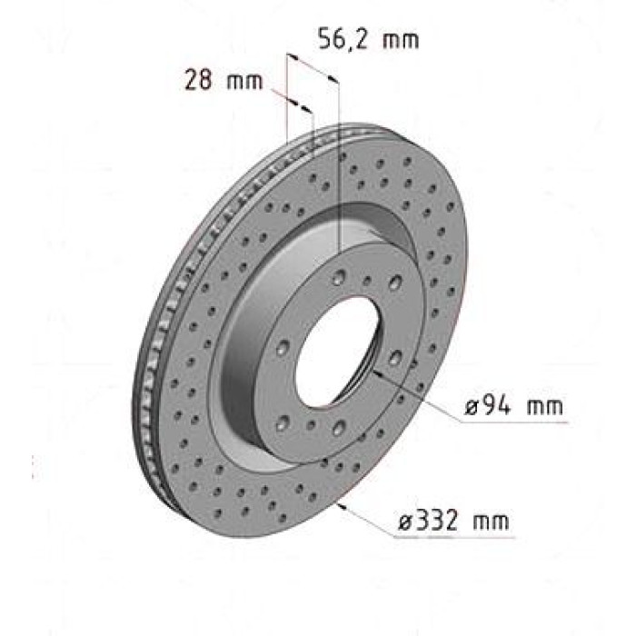 • Эффективное удаление загрязнений. Отверстия на поверхности дисков способствуют быстрому удалению тормозной пыли и воды, что не только улучшает характеристики торможения, но и продлевает срок службы как дисков, так и тормозных колодок.