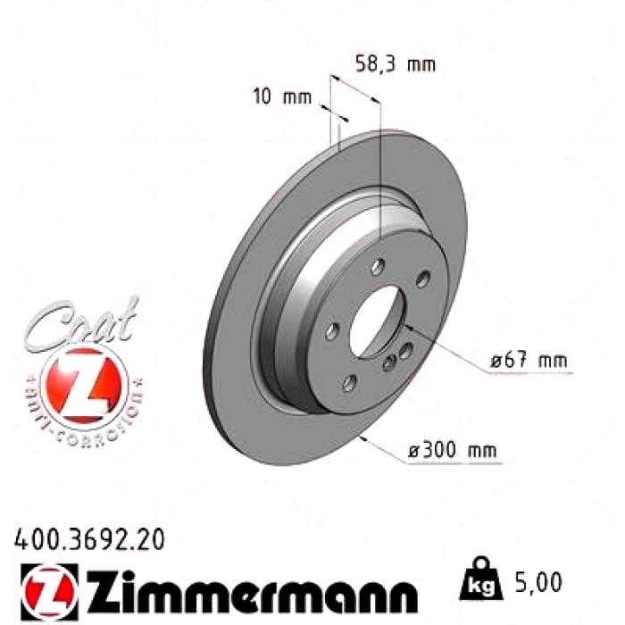 Задний тормозной диск 300x10 Zimmermann 400.3692.20