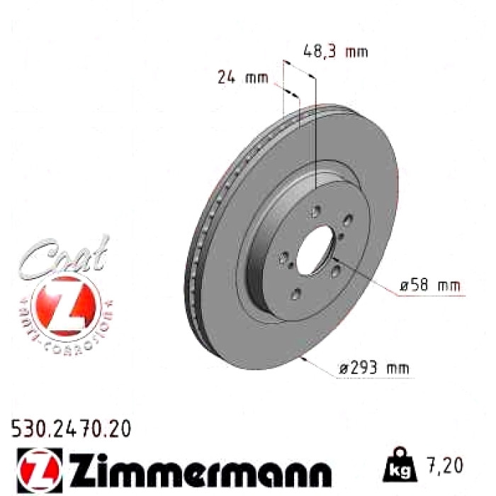 Передний тормозной диск 293x24 Zimmermann Coat Z 530247020