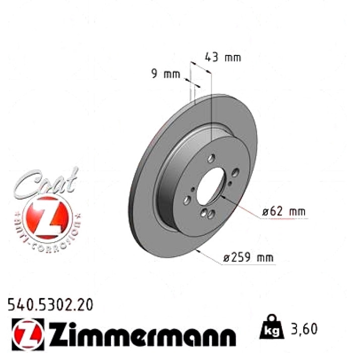 Задний тормозной диск 259x9 Zimmermann 540.5302.20