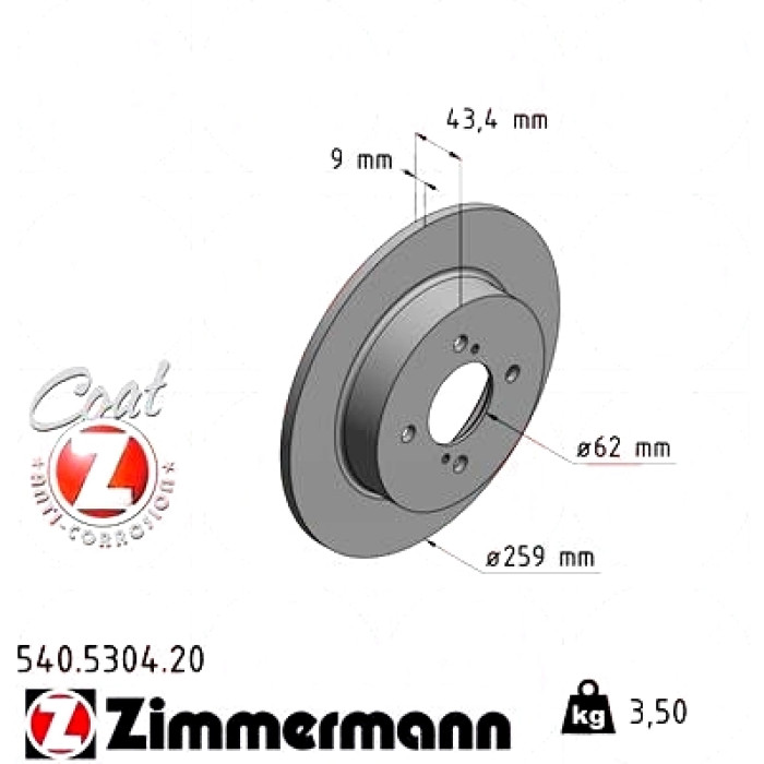 Задний тормозной диск 259x9 Zimmermann 540.5304.20