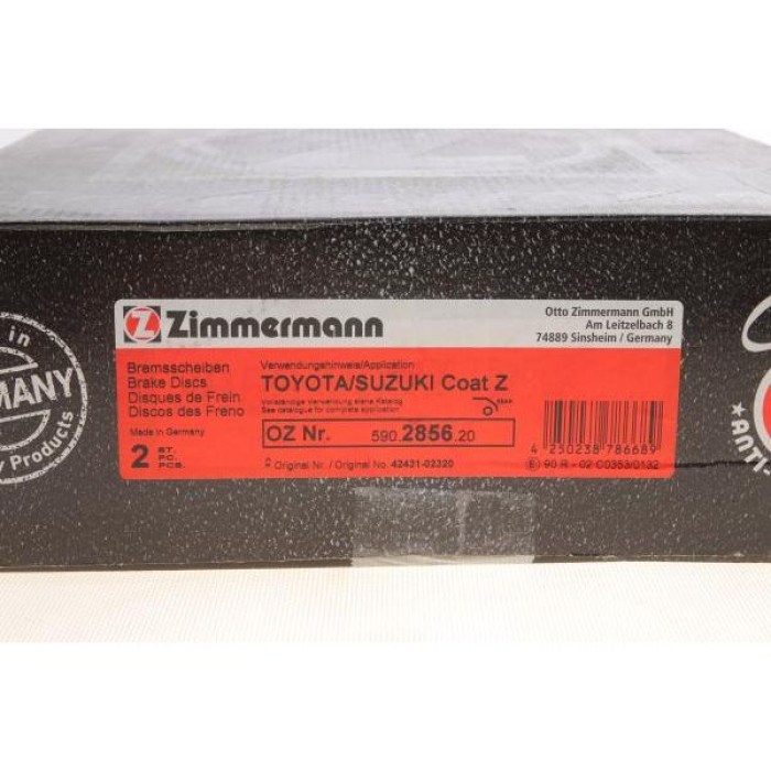 590285620 Zimmermann Coat Z Задний тормозной диск 274x10
