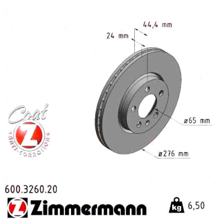 Передний тормозной диск 276x24 Zimmermann Coat Z 600326020