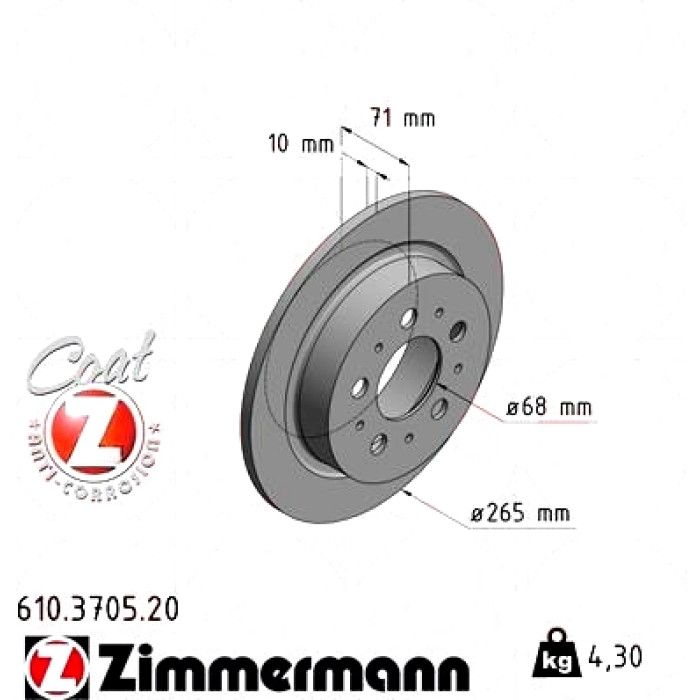 610.3705.20 Zimmermann Задний тормозной диск 265x10 на VOLVO 940 II Kombi (945) с двигателем 2.3