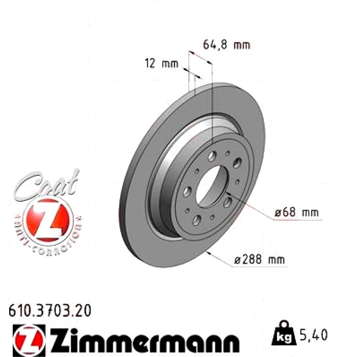 610.3703.20 Zimmermann Задний тормозной диск 288x12 на VOLVO S60 I (384) с двигателем 2.0 T