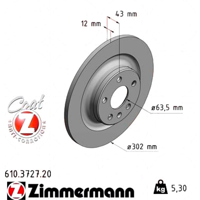 Задний тормозной диск 302x12 на VOLVO S90 II (234) с двигателем 2.0 T6 AWD Zimmermann 610372720