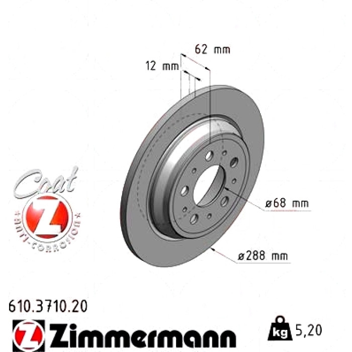 610.3710.20 Zimmermann Задний тормозной диск 288x12 на VOLVO V70 II (285) с двигателем 2.4 D5 AWD