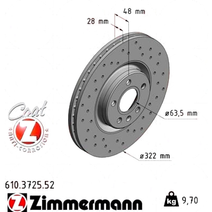 Спортивный передний тормозной диск Zimmermann Sport Z 610.3725.52 на VOLVO V90 II Kombi (235, 236) с двигателем 2.0 D3 дата производства с 03.2016 по до н.в.
