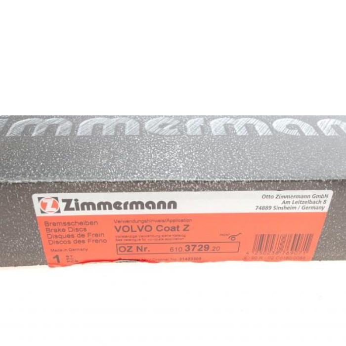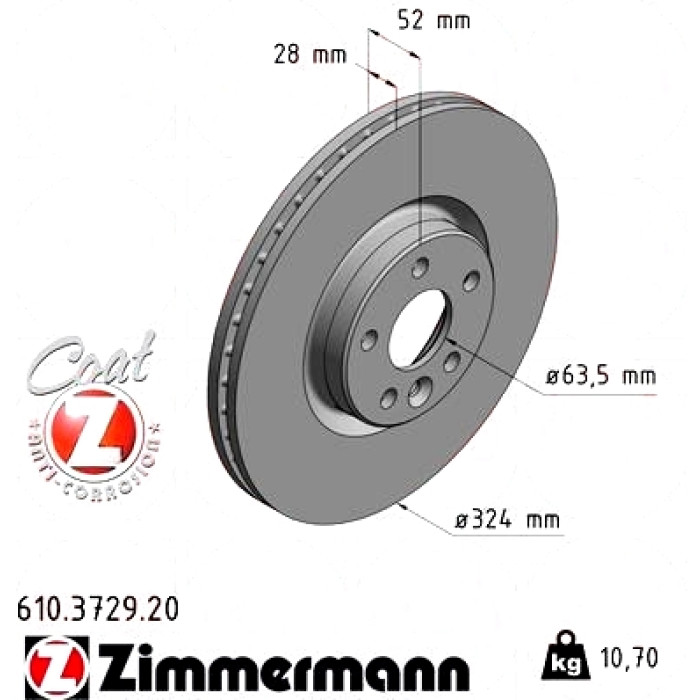 Передний тормозной диск 324x28 на VOLVO XC60 (156) с двигателем T5 AWD Zimmermann 610372920
