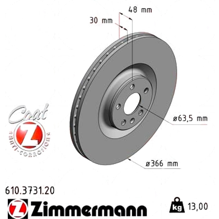 Передний тормозной диск 366x30 на VOLVO XC90 II (256) с двигателем D4 Zimmermann 610373120