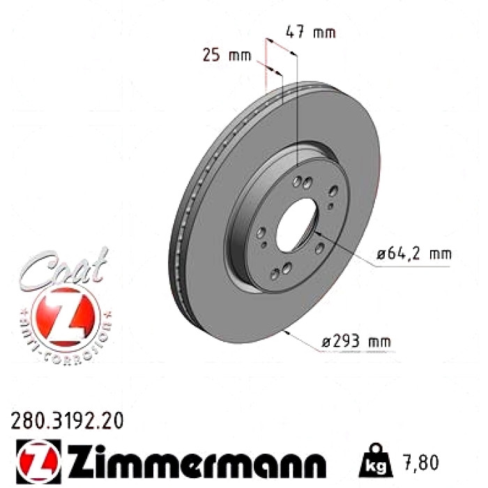 Передний тормозной диск 293x25 на HONDA HR-V (RU) с двигателем 1.5 (RU1) Zimmermann 280319220