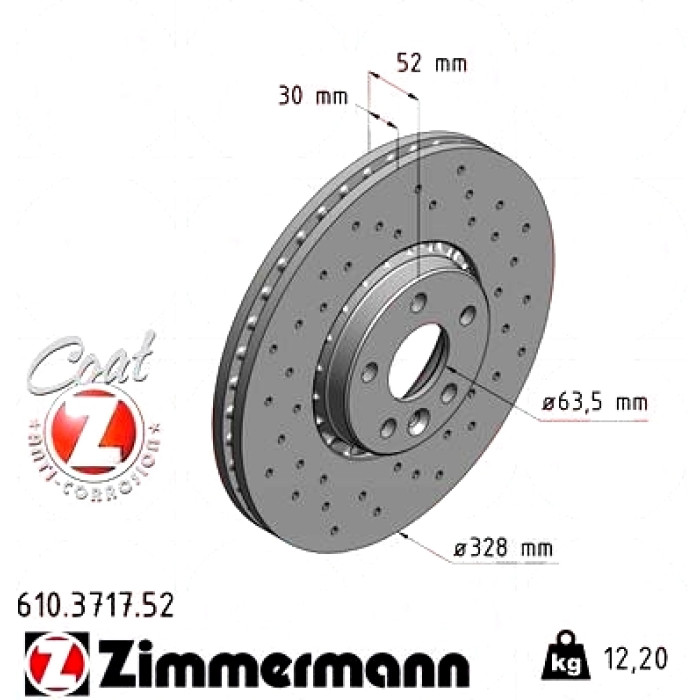 Спортивный передний тормозной диск Zimmermann Sport Z 610.3717.52 на VOLVO XC60 (156) с двигателем 2.0 T дата производства с 05.2008 по до н.в.