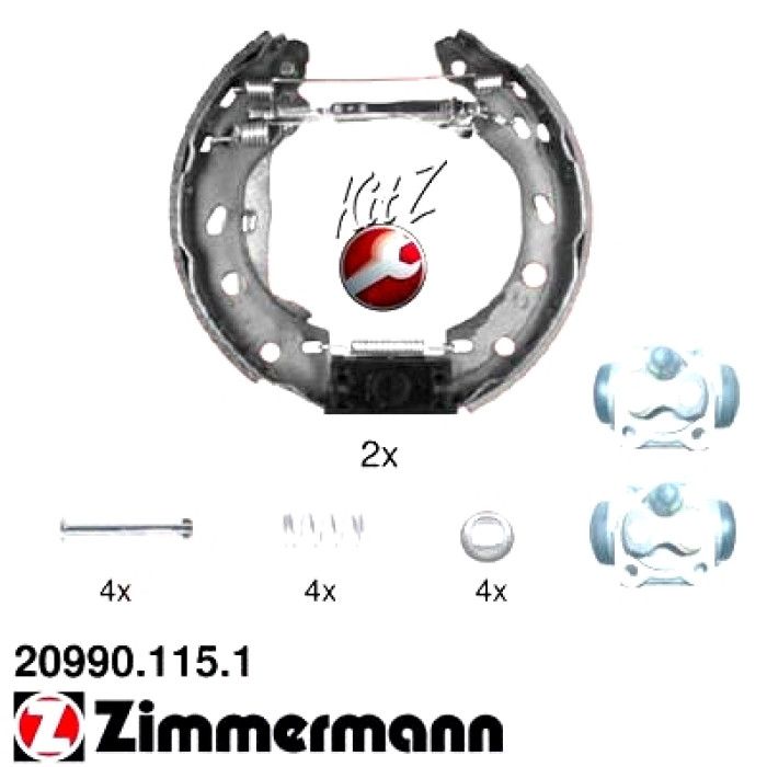 Комплект барабанних гальмівних колодок Zimmermann 20990.115.1 на SMART FORTWO Cabrio (450) з двигуном 0.7 (450.452) дата виробництва с 01.2004 по 01.2007